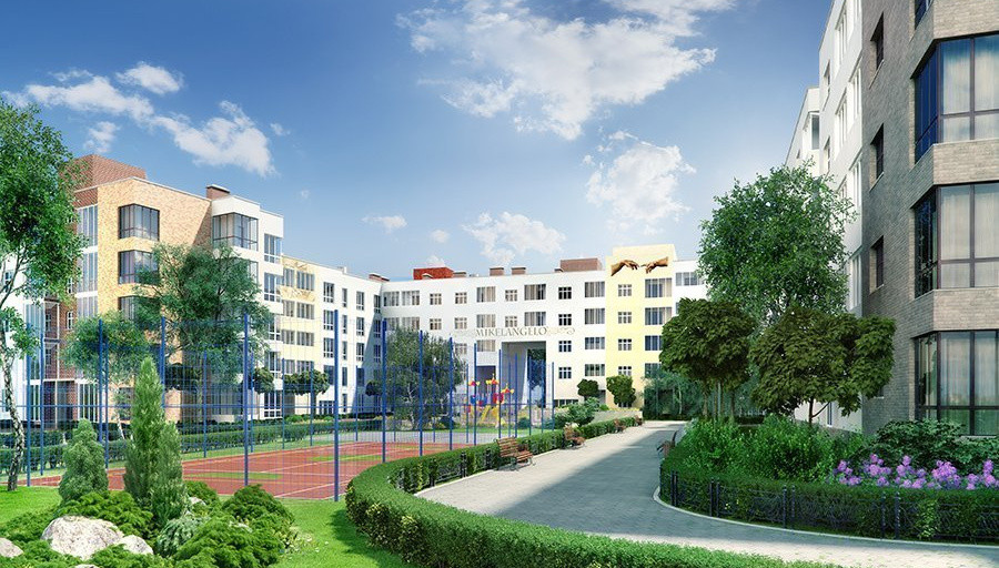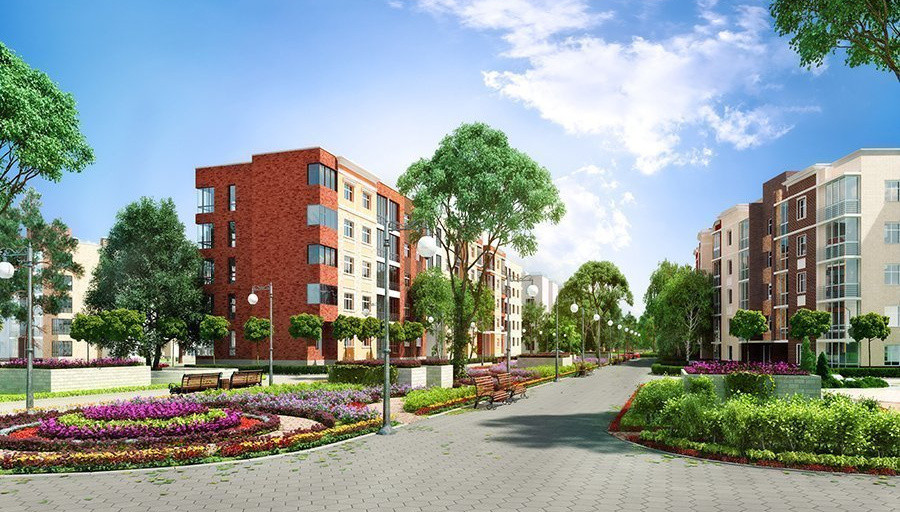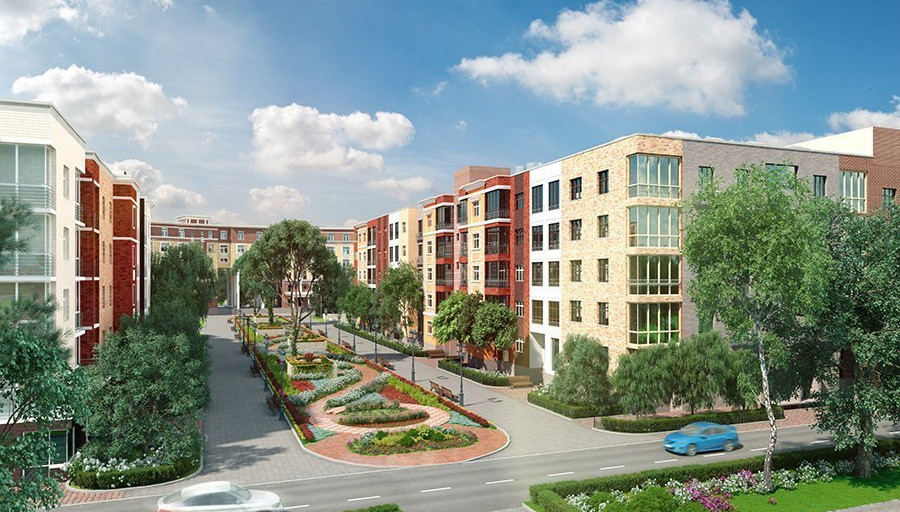 Комплекс занимает 17 гектаров, предлагая жильцам просторные дворовые территории и удобную планировку.