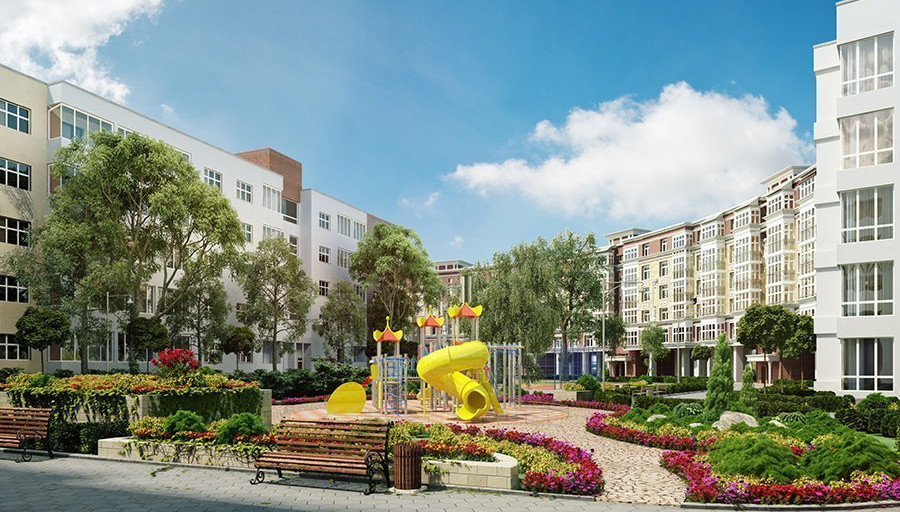 В настоящее время на территории комплекса оборудованы дворы и игровые площадки, а также спортивные зоны для активного отдыха.
